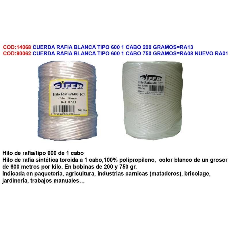 CUERDA RAFIA 600 200 GRS BLANCO cantidad